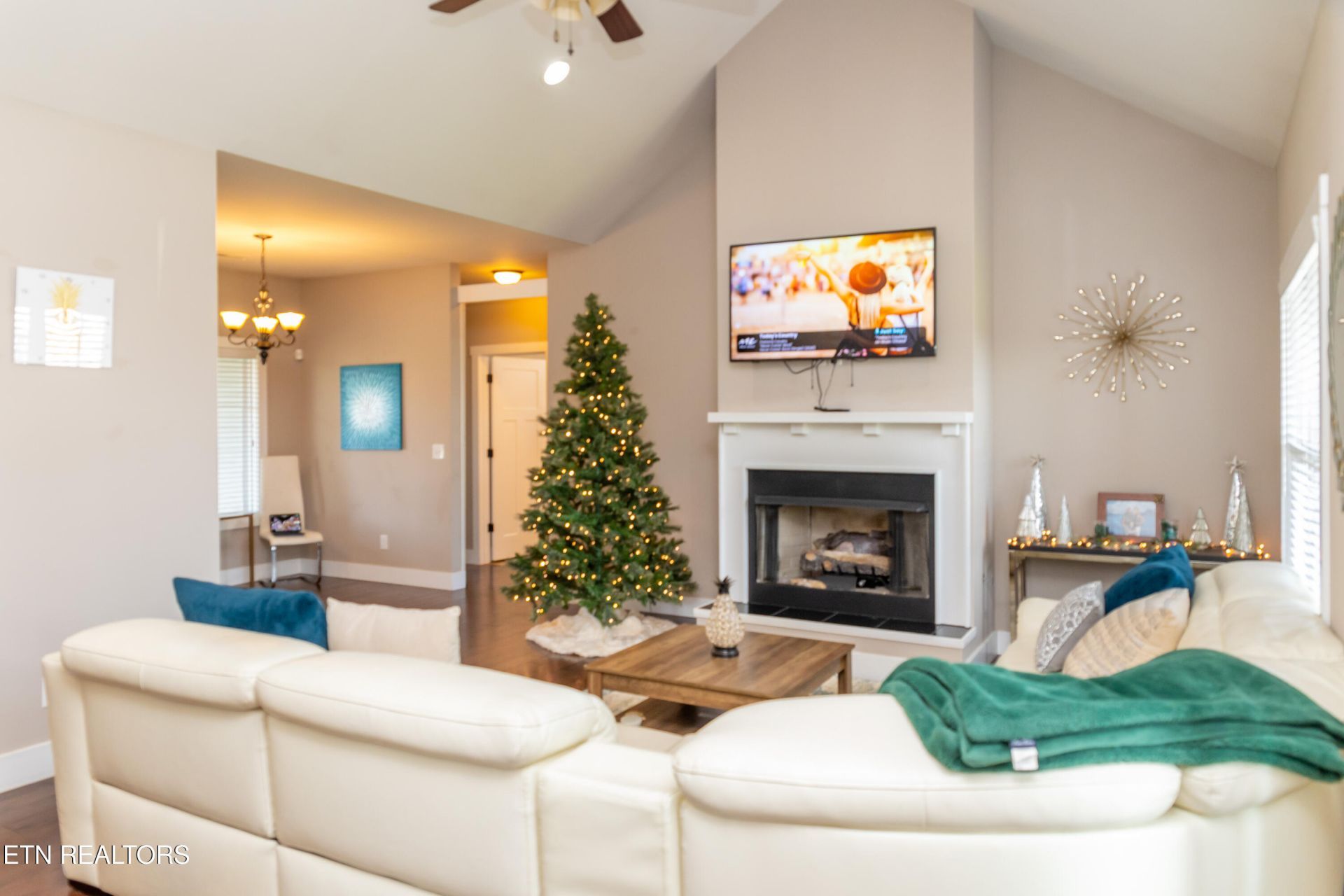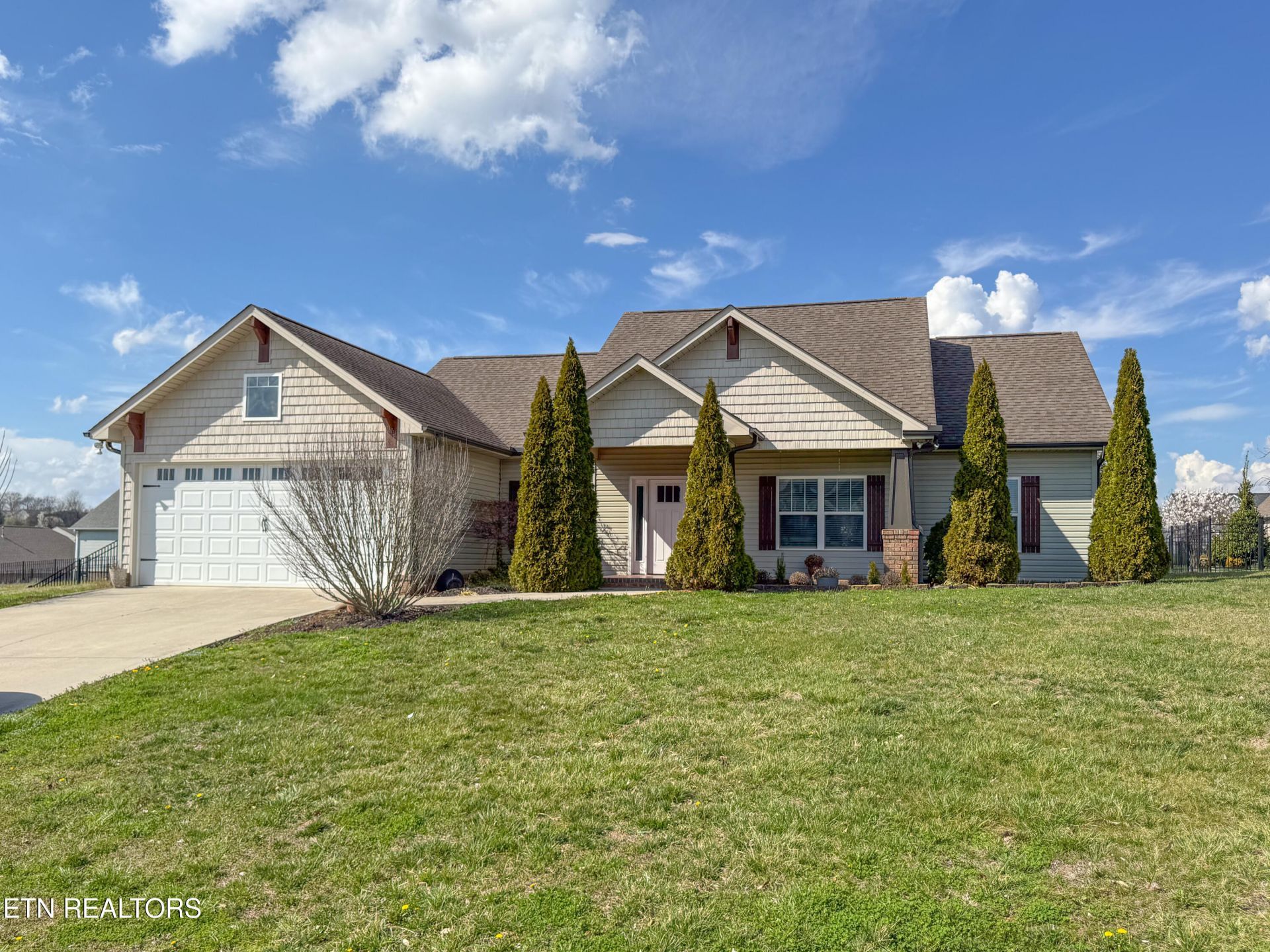 Welcome to this beautiful 3 bedroom, 2 bathroom home located in a very desirable Sevierville neighborhood. The stainless steel appliances in the kitchen add a touch of elegance, while the gas fireplace in the living room creates a cozy atmosphere. With vaulted ceilings and LVP flooring throughout, this home offers a modern and stylish feel. The primary bedroom features 2 walk-in closets and a large en suite bathroom with soaking tub and walk-in shower. The 2 additional bedrooms are nice-sized for a growing family. Enjoy the large level backyard and covered patio, perfect for outdoor entertaining and an amazing Smoky Mountain view from the front porch. This house boasts a spacious 2 car garage, perfect for storing vehicles and outdoor equipment. Don't miss out on the opportunity to live in this great neighborhood with no stairs and carpet in the bedrooms for added comfort. Make this house your home today.
